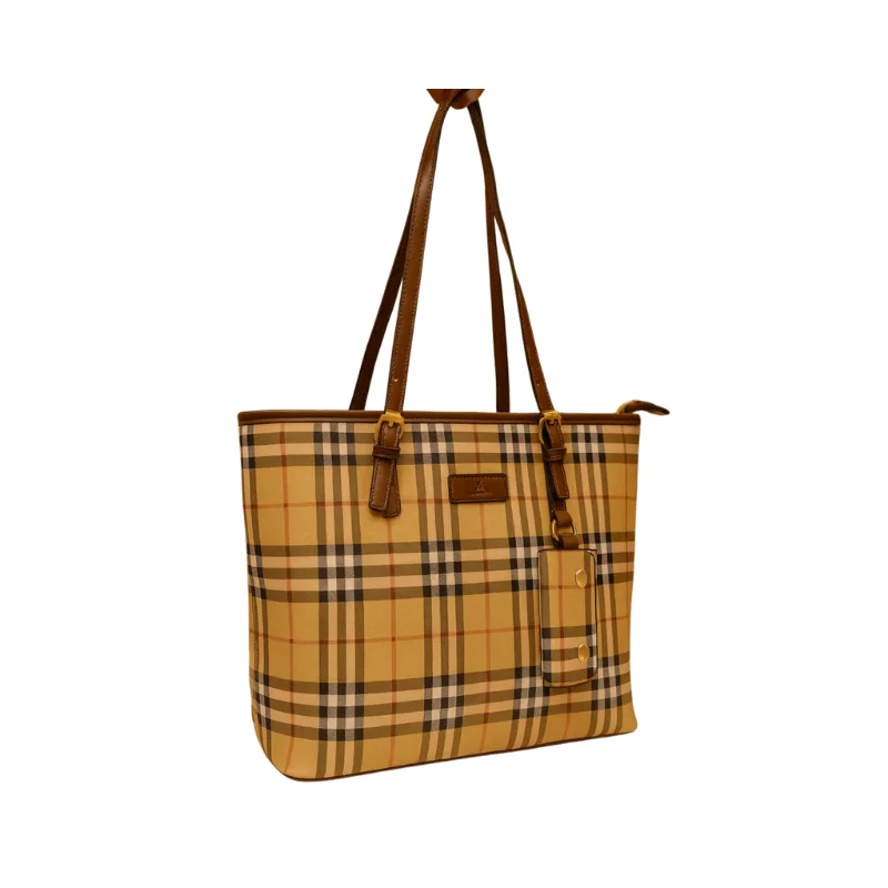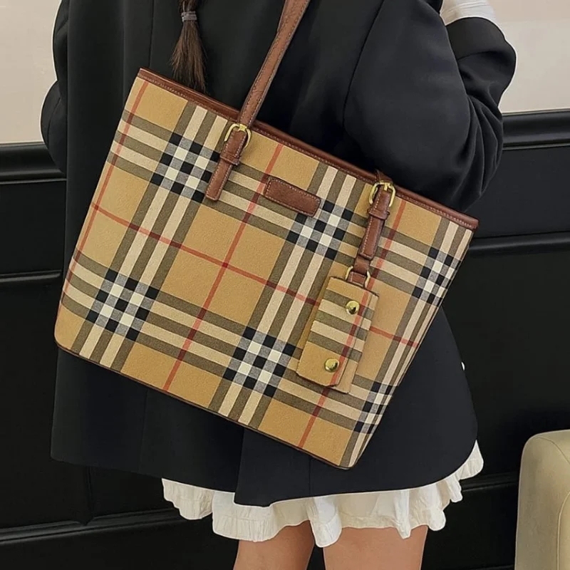 Women’s Classic Tartan Plaid Tote Bag with Adjustable Straps & Matching Pouch – Vintage Check Shoulder Handbag