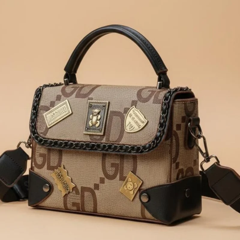 Women’s GD Monogram Box Satchel with Retro Teddy Bear Patches