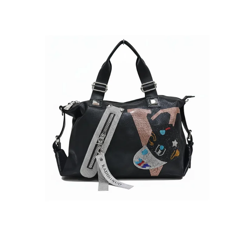 Women’s Sleek “Bling” Rhinestone Bear Hobo Bag – Soft Faux Leather Tote with Crystal “V” Logo & Statement Zipper Tassel