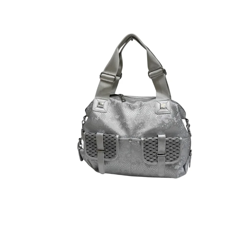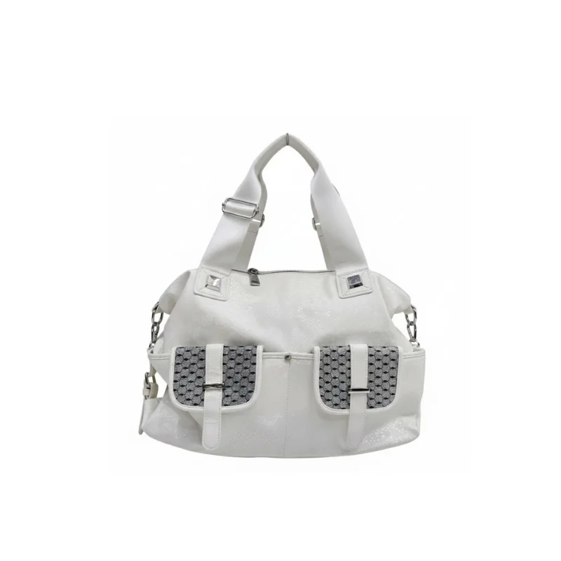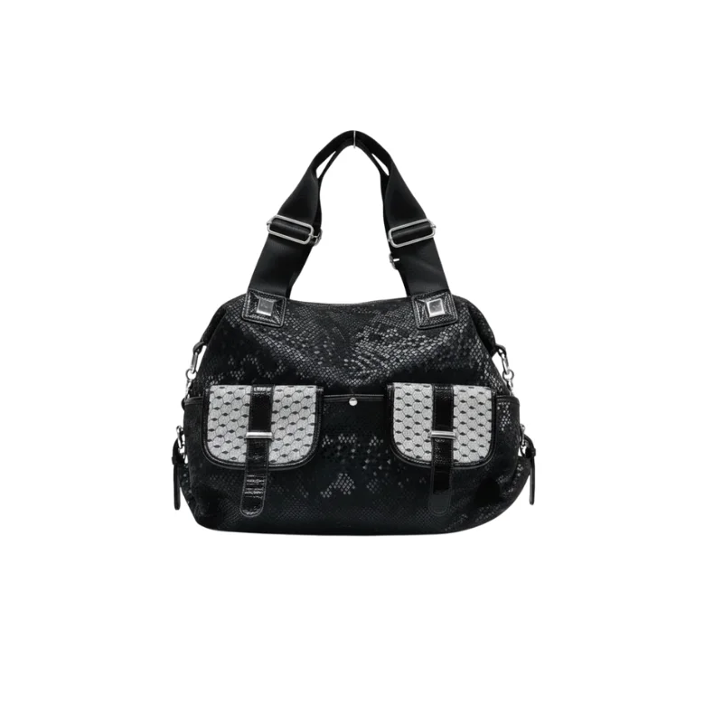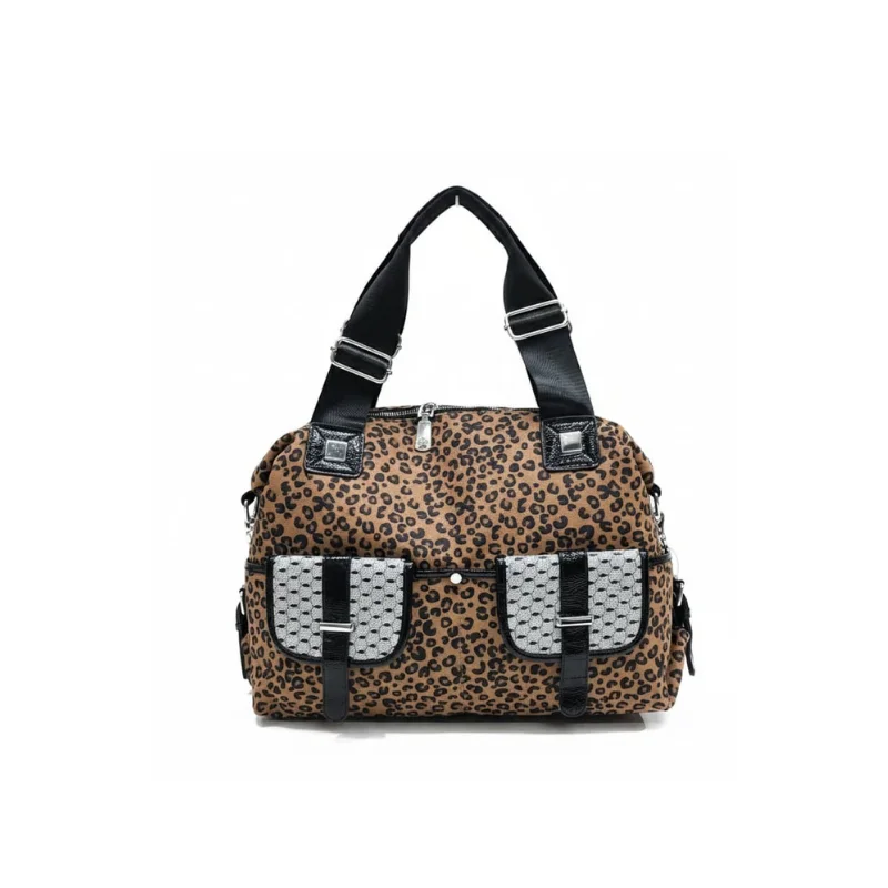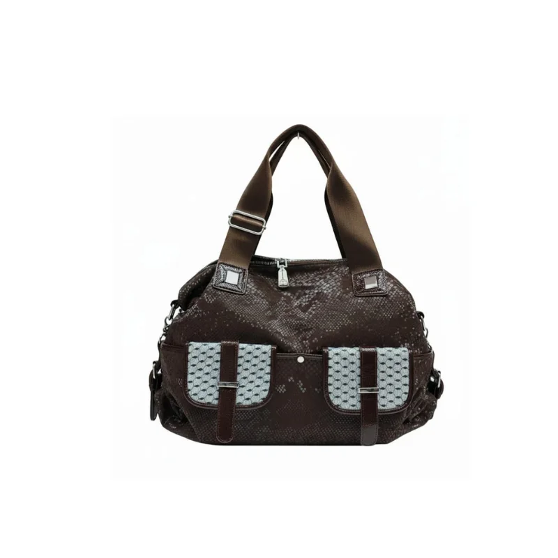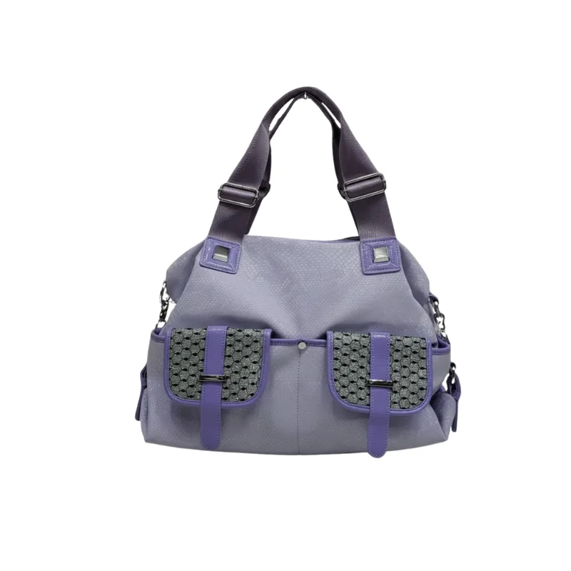 Women’s Utility Shoulder Bag with Wide Adjustable Straps and Glitter Geometric Front Pockets