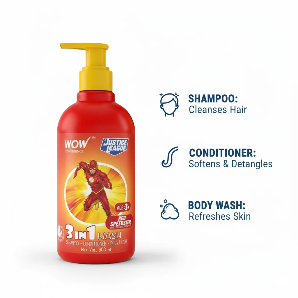 Introduce your child to the heroic world of the Justice League with the WOW Skin Science Justice League Flash 3-in-1 Kids Wash! This vibrant red bottle, featuring the iconic “Red Speedster” Flash, makes bath time an exciting adventure. Designed specifically for children aged 3 and above, this all-in-one formula simplifies their routine while delivering effective and gentle cleansing.