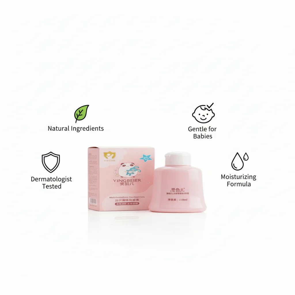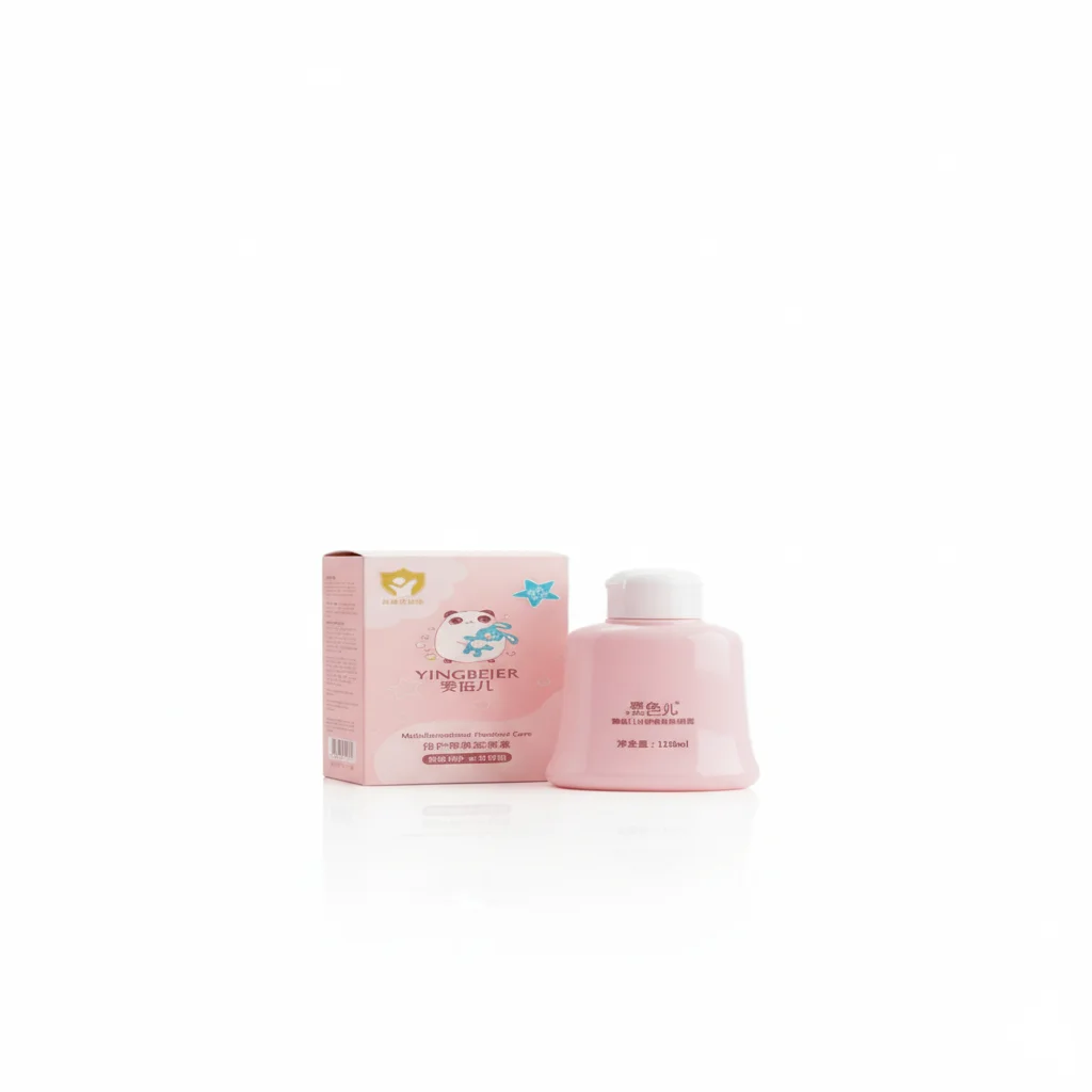 This YINGBEIER skincare product is a gentle, protective cream formulated for the delicate skin of infants and children. Housed in a distinctive pink bottle with a matching box featuring a cartoon panda, this cream is designed to provide comprehensive care against the harsh effects of cold and dry weather.