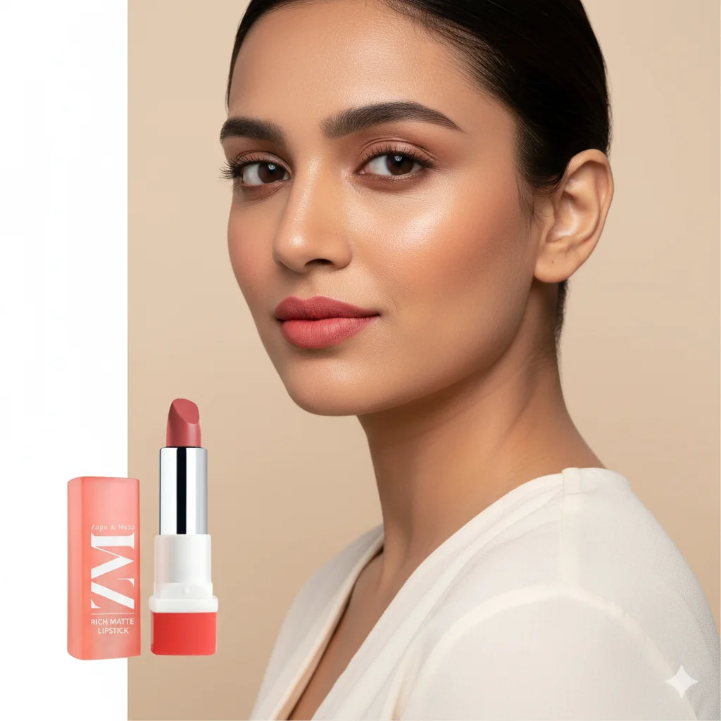 Full Description: The product comes in an attractive display box, likely for retail, showcasing a woman wearing lipstick to highlight